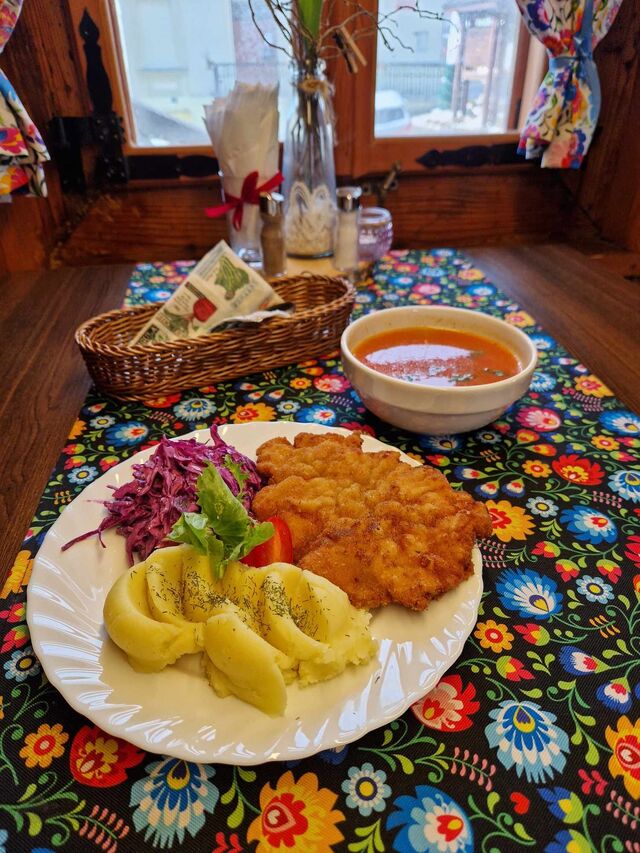 Restauracja Swojska Pajda  to miejsce, gdzie domowa kuchnia spotyka się z regionalnymi smakami. Serwujemy codziennie świeże danie dnia, które zachwyca różnorodnością i smakiem, przypominając domowe obiady. W menu znajdziesz także regionalne specjały oraz pyszną pizzę, idealną na każdą okazję. Zapraszamy na smaczny posiłek w przytulnej atmosferze!